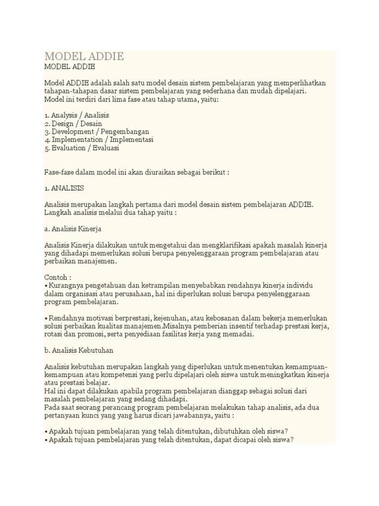 Model addie dalam pengajaran dan pembelajaran. We did not find results for: Maybe you would like to learn more about one of these? Check spelling or type a new query.